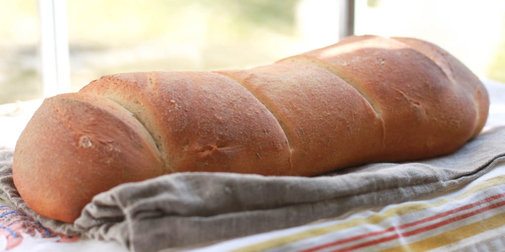 We used a bread machine to make dough but baked this honey rosemary bread on a Emile Henry Baking Stone. The baking stone helps an ordinary oven act like a classic brick oven. It absorbs moisture for crispier crust.